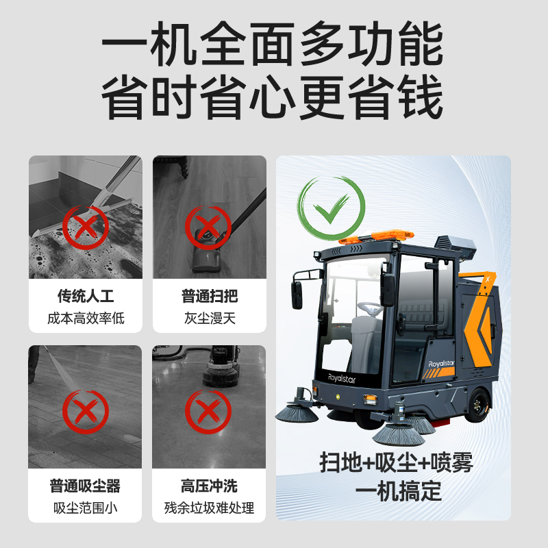 掃地吸塵噴霧三合一,22000㎡/h高效清掃,2200mm加大清掃寬度,5000mm*4邊刷聚塵,4-6h持久續(xù)航,...