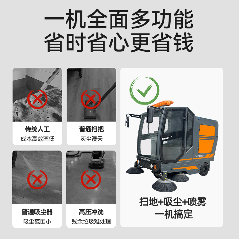 無塵級清掃工業(yè)掃地機,4-6h超長續(xù)航,2300mm清掃寬度,機械化清掃效率大提升,23000㎡/h清掃效率,不挑地...